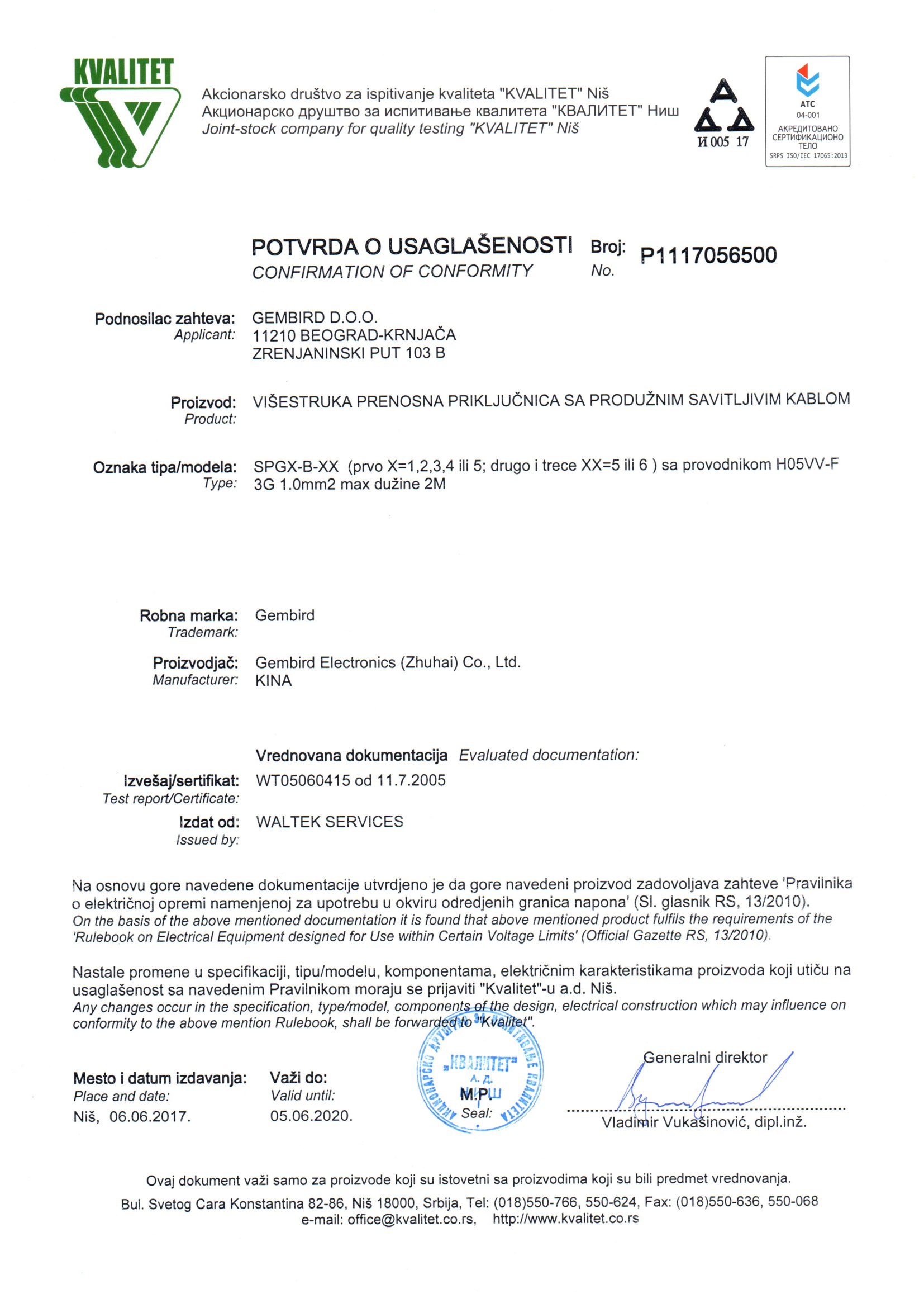 potrebni sertifikat mozete dobiti na www.gembird.rs